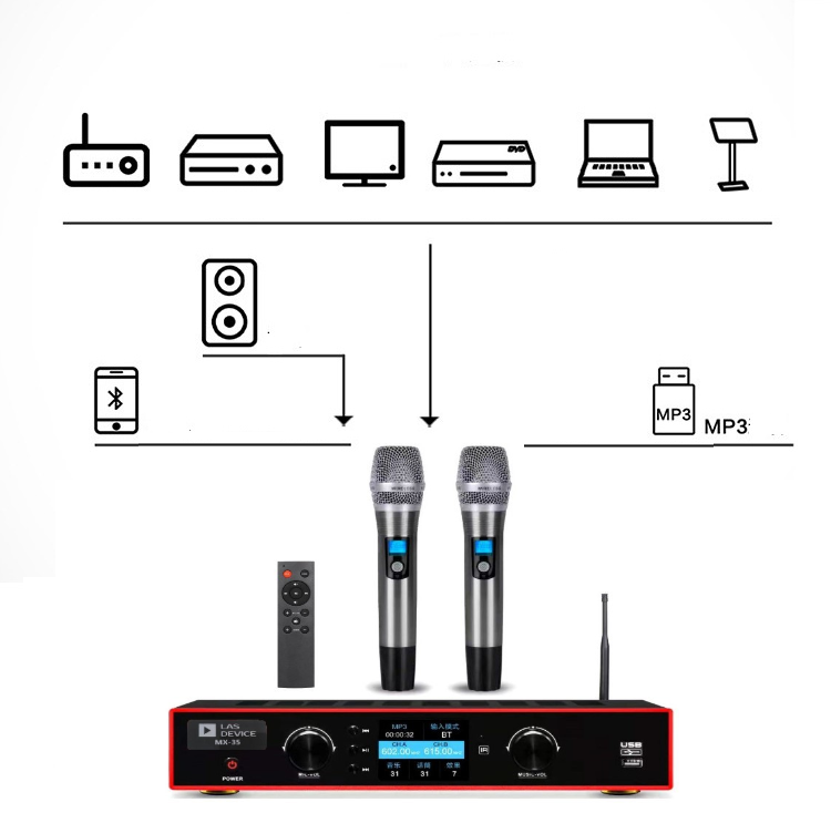 Мощность 350 Вт*2 + множественная реверберация эквалайзера + микрофон U-сегмента «три в одном» , позволяет сэкономить на различных расходах на оборудование