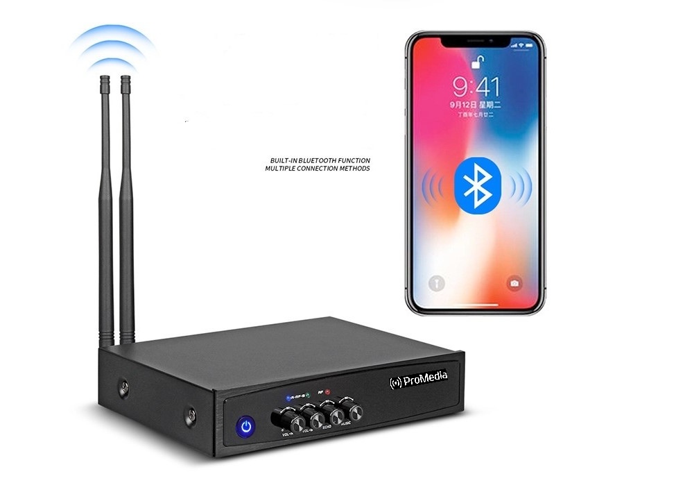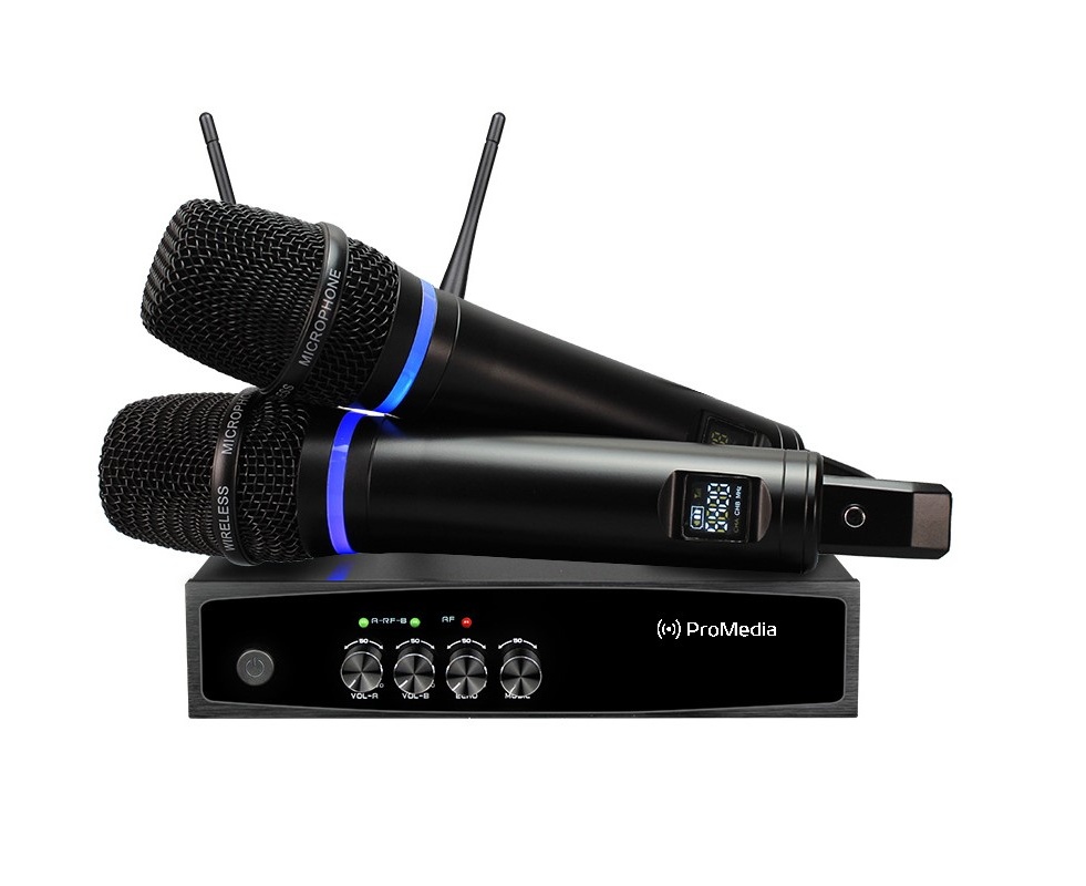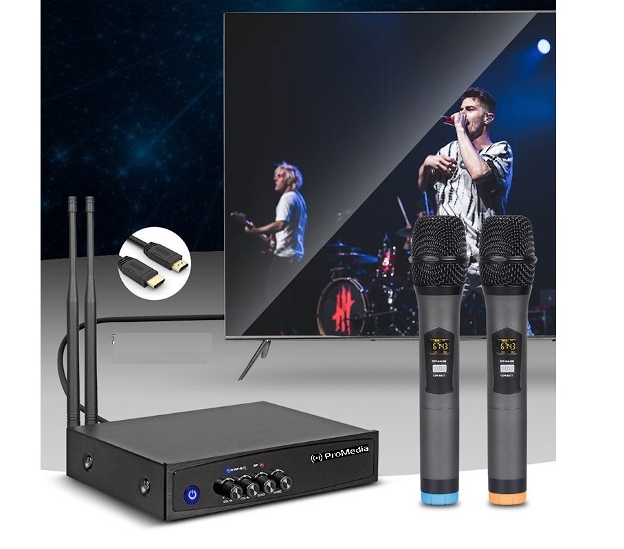 Караоке микшер ProMedia HX-20 состоящая из 2-х беспроводных вокальных микрофонов на аккумуляторах, с возможностью подключения дополнительного микрофона посредством провода. Благодаря наличию Bluetooth-соединения караоке микшер ProMedia HX-20 легко использовать для воспроизведения караоке с YouTube, Smart TV. Также к нему можно подключать любые смартфоны, планшеты и ноутбуки на базе IOS или Android для беспроводной передачи аудио сигнала