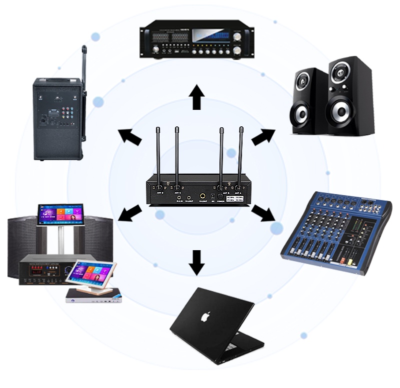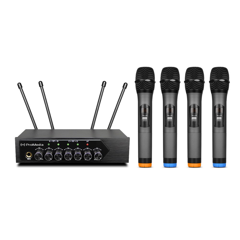 Караоке микшер ProMedia KF-4 состоящая из 4-х беспроводных вокальных микрофонов на аккумуляторах, с возможностью подключения дополнительного микрофона посредством провода. Благодаря наличию Bluetooth-соединения караоке микшер ProMedia KF-4 легко использовать для воспроизведения караоке с YouTube, Smart TV. Также к нему можно подключать любые смартфоны, планшеты и ноутбуки на базе IOS или Android для беспроводной передачи аудио сигнала