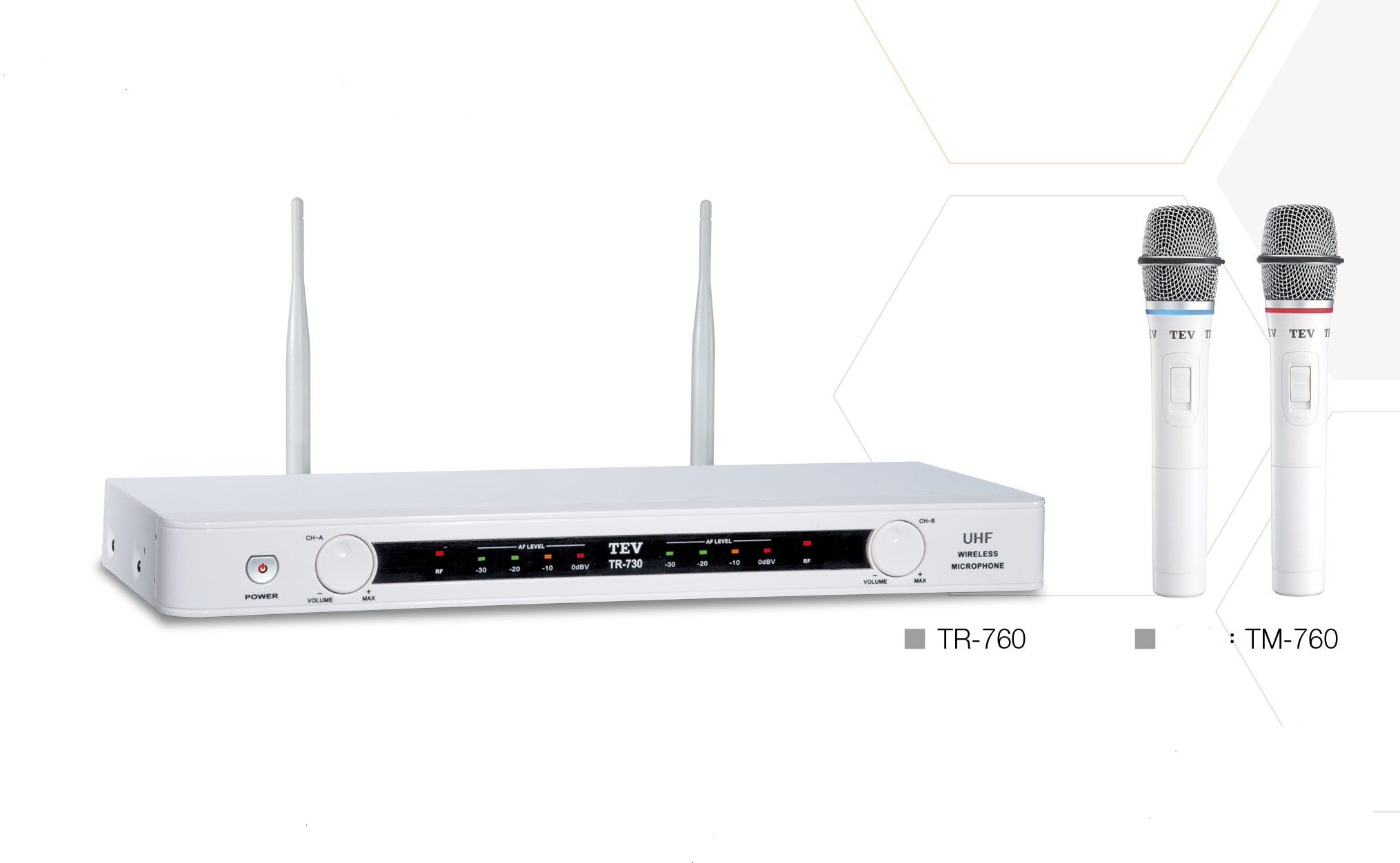 Двухканальная UHF PLL  микрофонная система TEV TR-760.